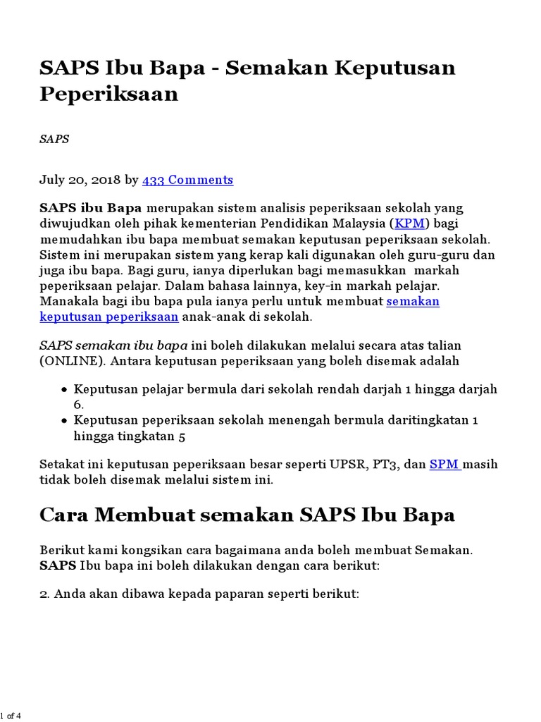 Saps Ibu Bapa Semakan Keputusan Peperiksaan Pdf